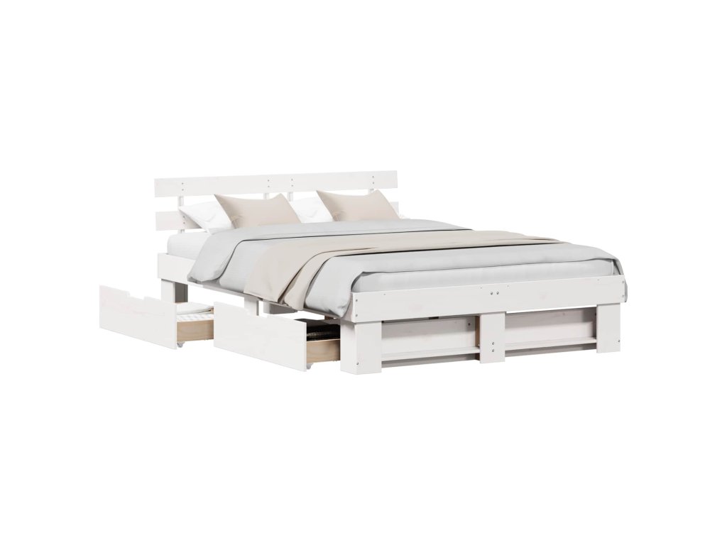 Rám postele s čelo Bílá 150 x 200 cm Masivní borové dřevo 3382272