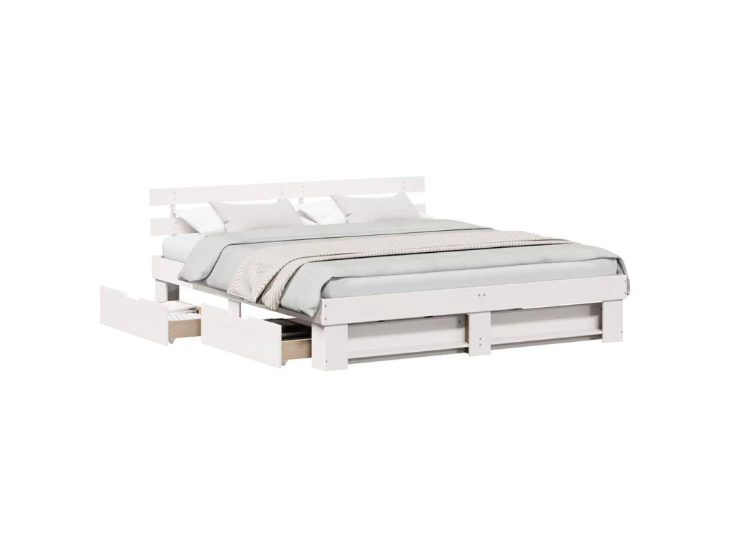 Rám postele s čelo Bílá 180 x 200 cm Masivní borové dřevo 3382266