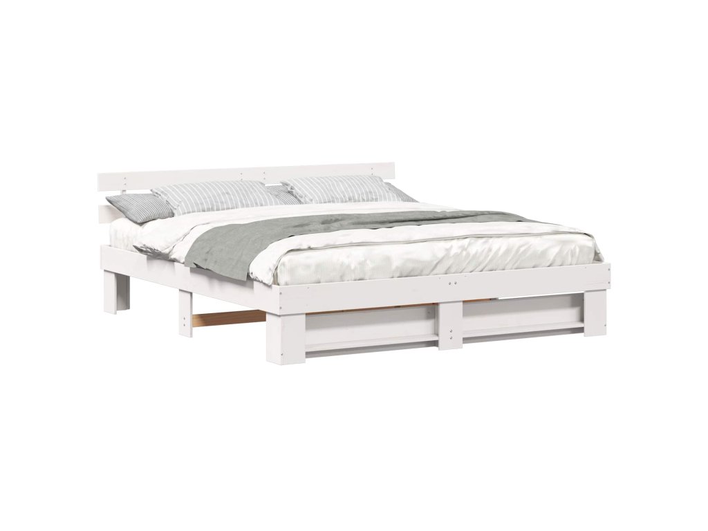 Rám postele s čelo Bílá 180 x 200 cm Masivní borové dřevo 3385674