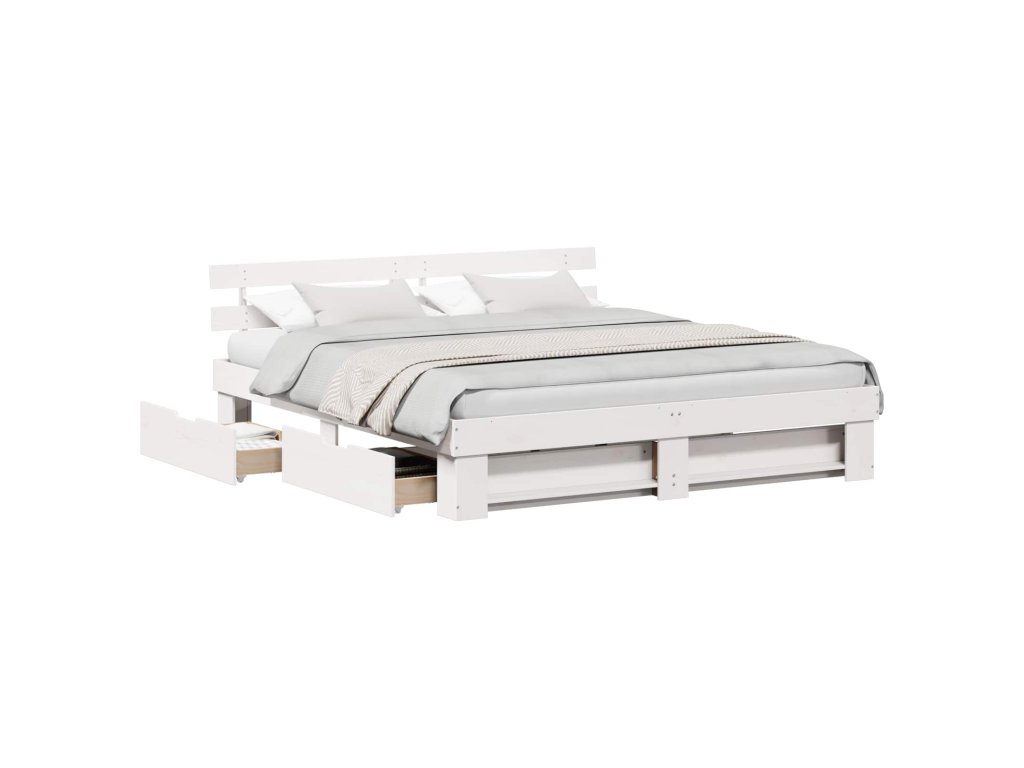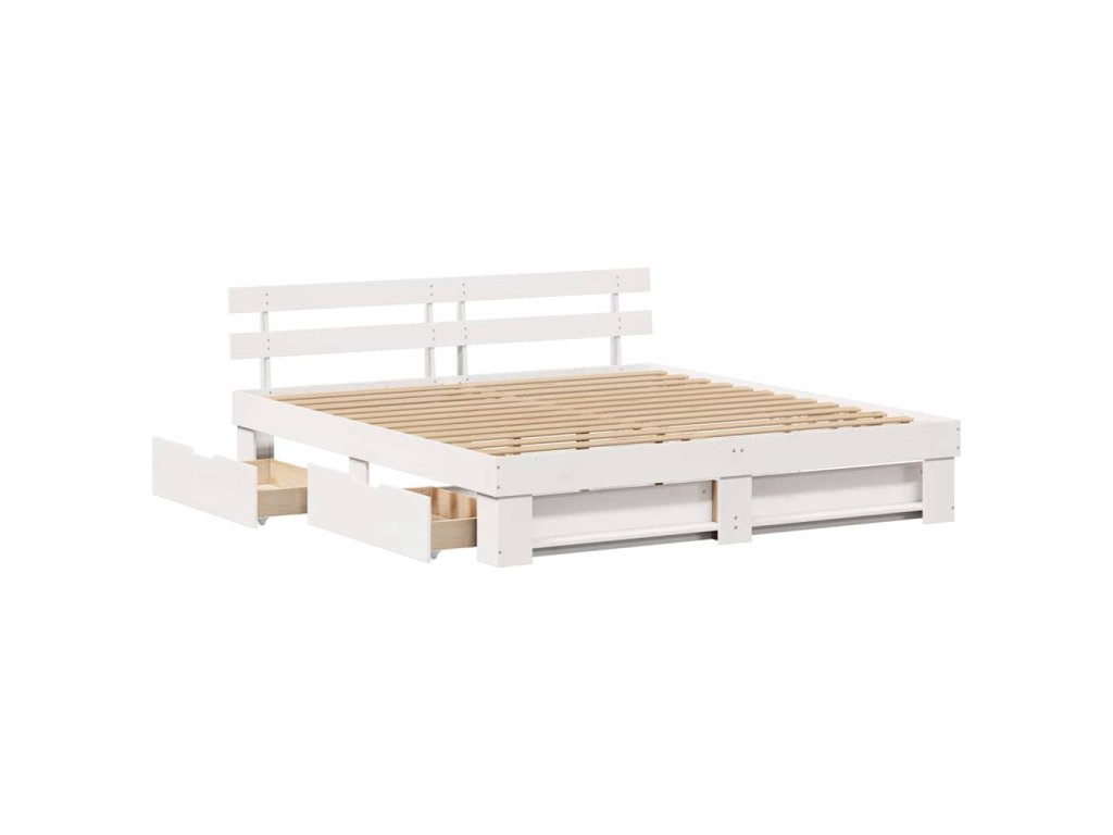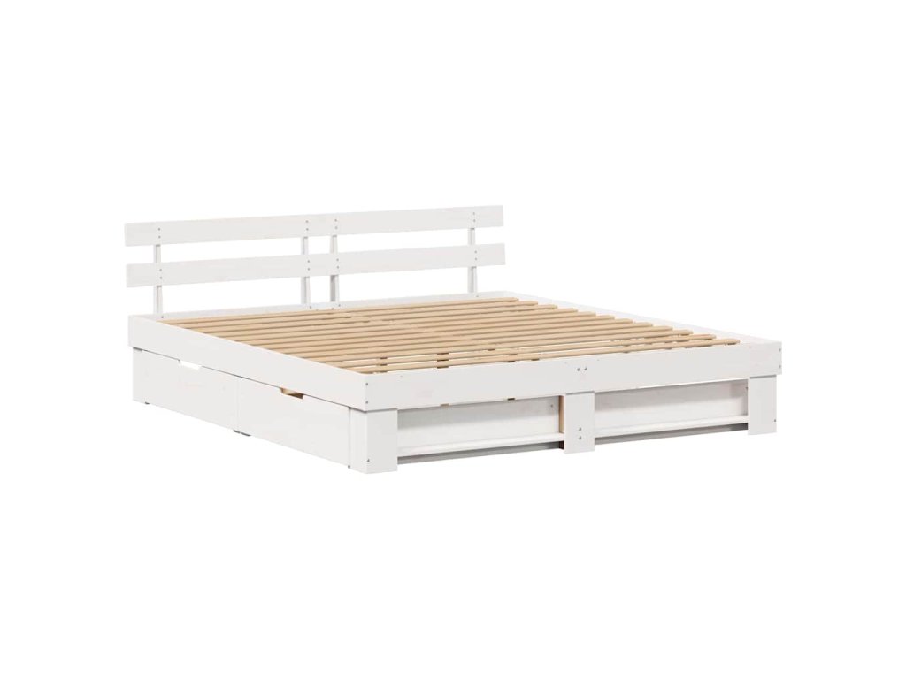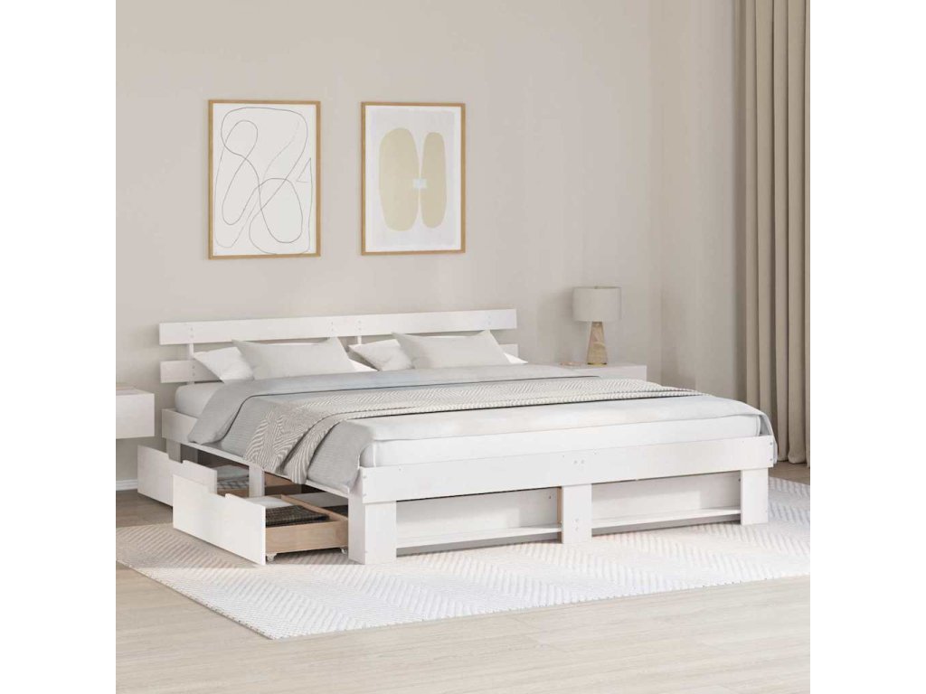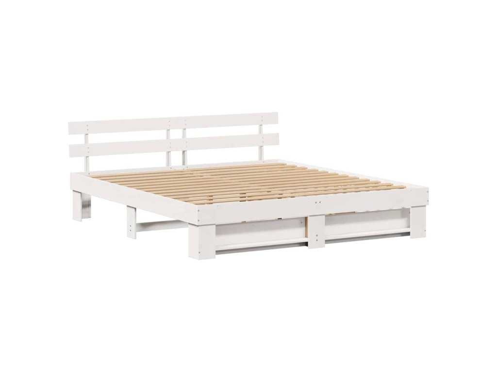 Rám postele s čelo Bílá 200 x 200 cm Masivní borové dřevo 3382263