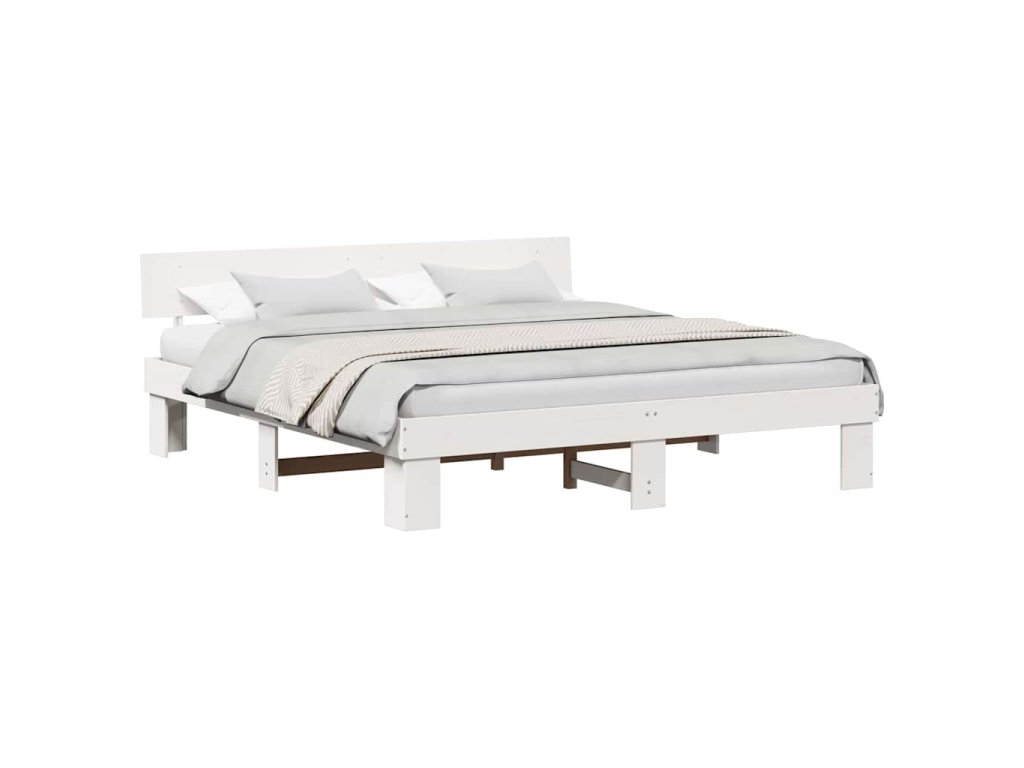 Rám postele s čelo Bílá 200 x 200 cm Masivní borové dřevo 3382290