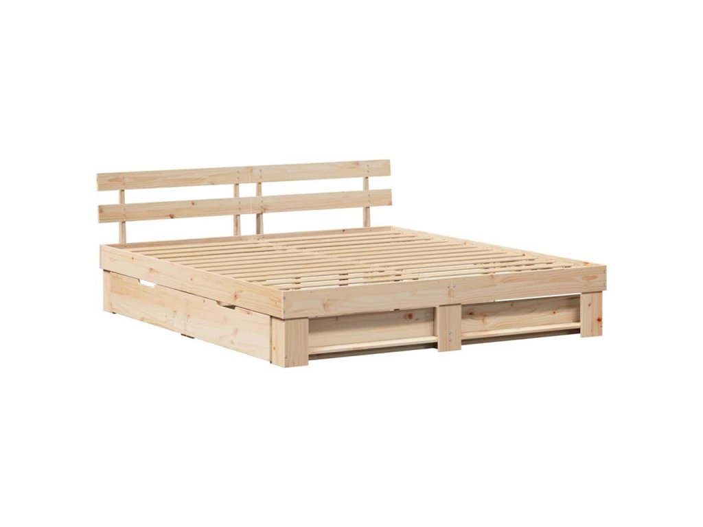 Rám postele s čelo Hnědá 200 x 200 cm Masivní borové dřevo 3382262
