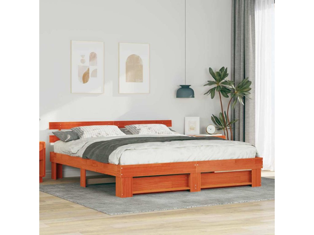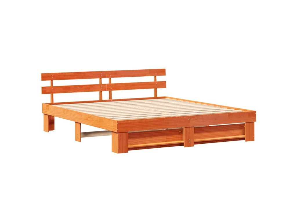 Rám postele s čelo Hnědá 200 x 200 cm Masivní borové dřevo 3385672