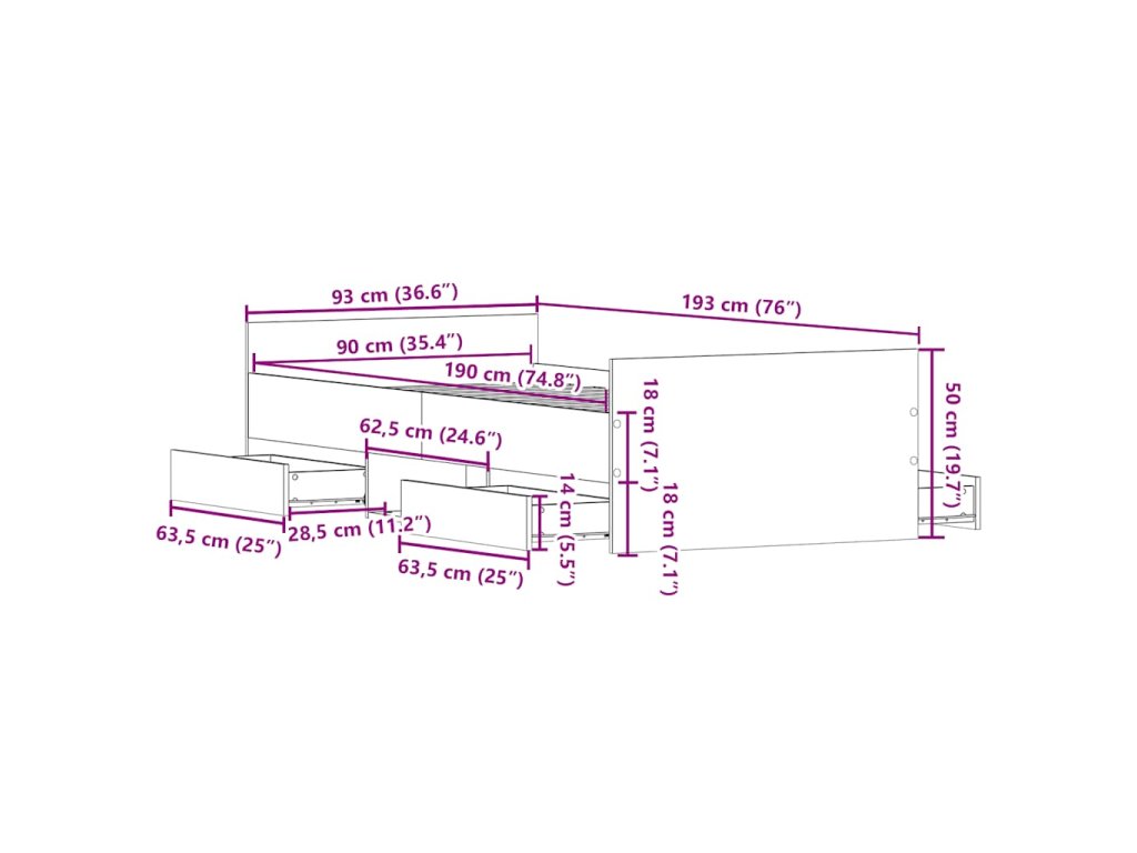 Rám postele s hlavovým a nožním čelem kouřový dub 90 x 190 cm 3203814