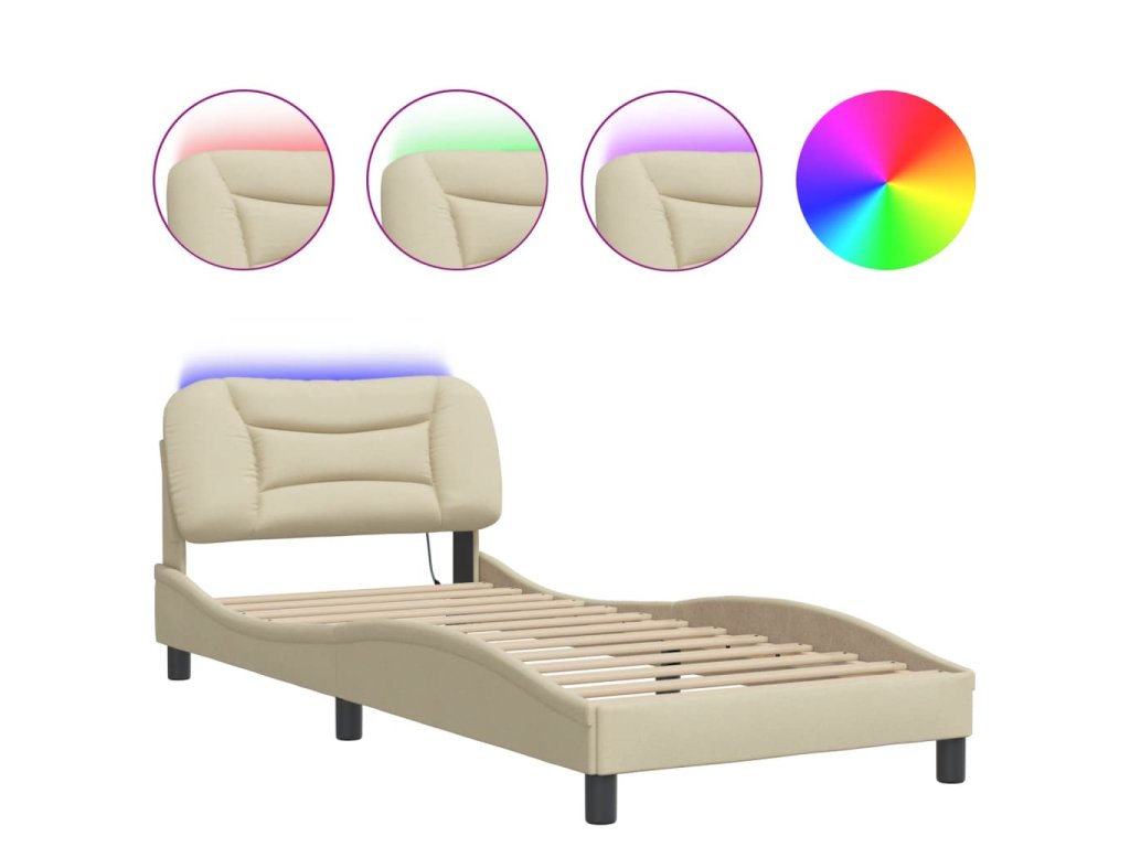Rám postele s LED bez matrace Hvar Cream 80x200 cm Látka 3213667