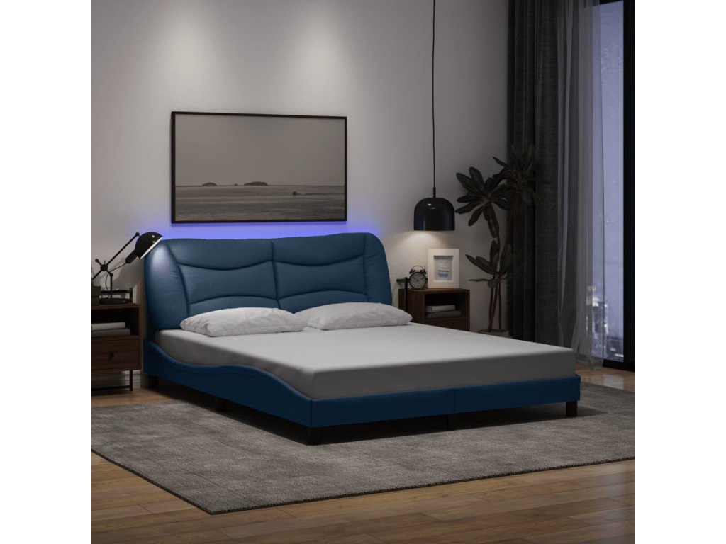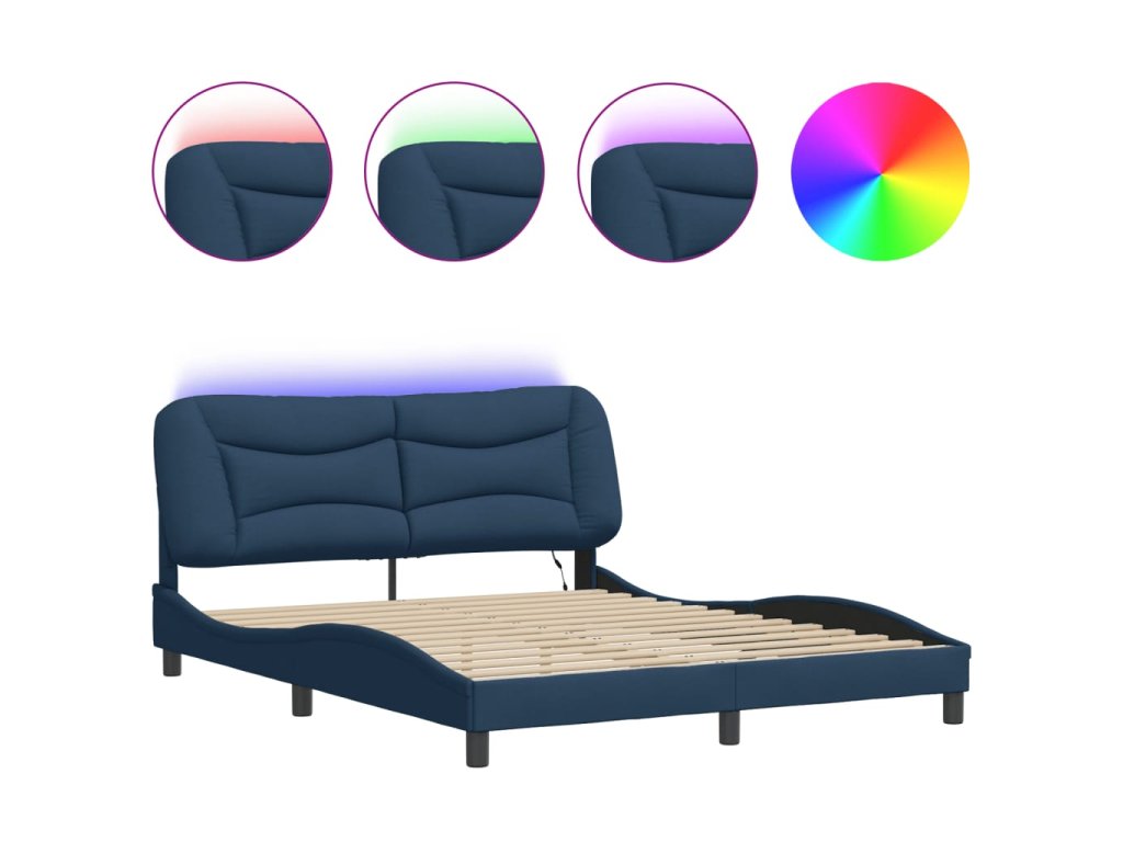 Rám postele s LED bez matrace Hvar modrý 160 x 200 cm textil 3213717