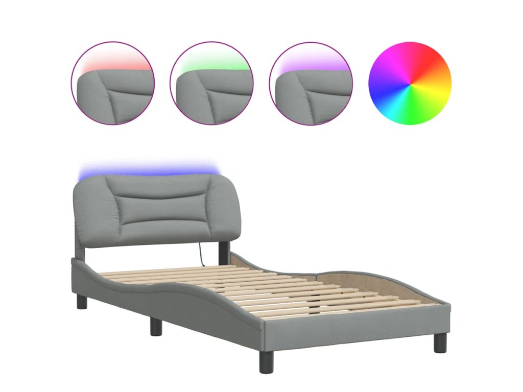 Rám postele s LED bez matrace Hvar Světle šedá 100x200 cm Látka 3213683
