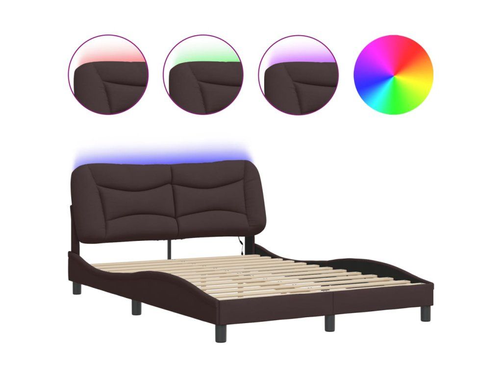 Rám postele s LED bez matrace Hvar Tmavě hnědá 140x190 cm Látka 3213700