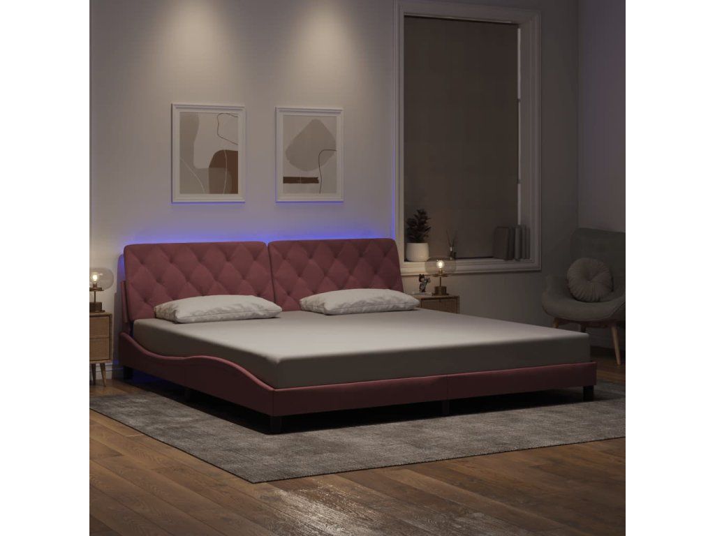 Rám postele s LED bez matrace růžový 200 x 200 cm samet 3213878