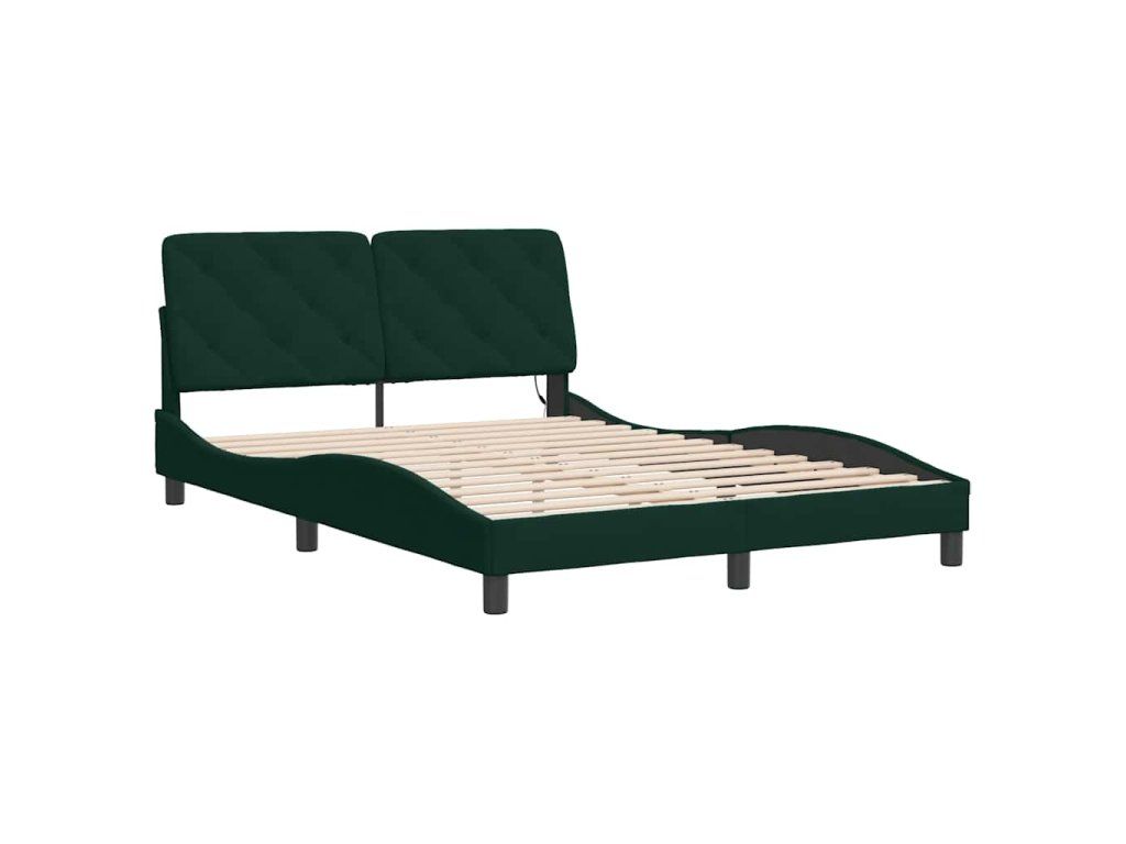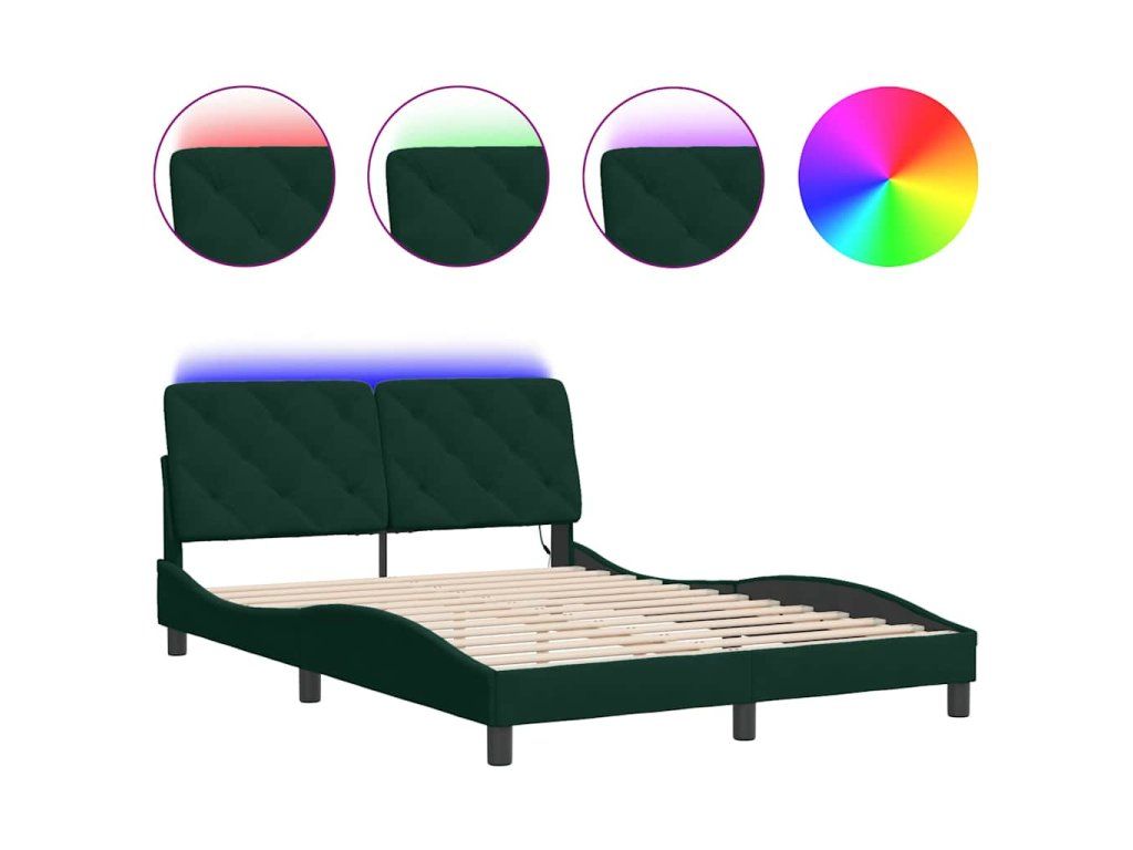 Rám postele s LED bez matrace tmavě zelený 140 x 190 cm samet 3213852