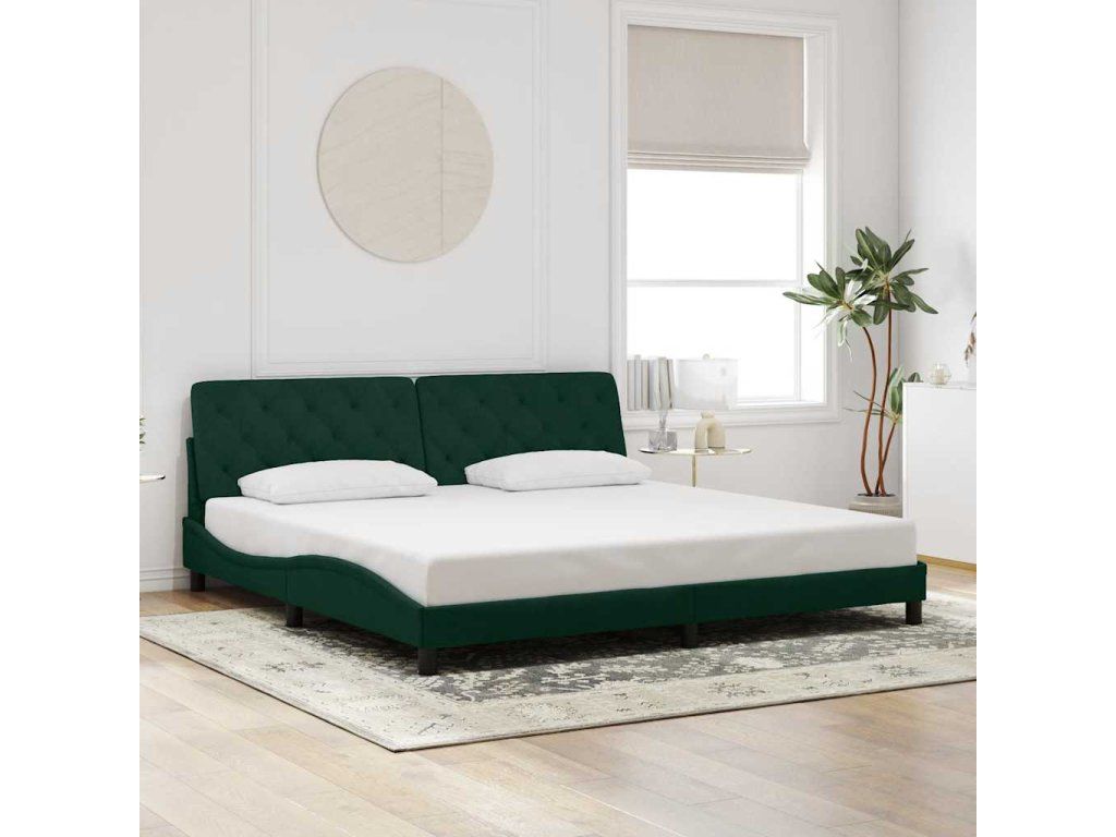 Rám postele s LED bez matrace tmavě zelený 200 x 200 cm samet 3213876