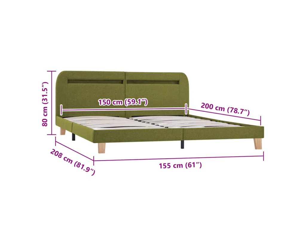 Rám postele s LED bez matrace Zelená látka 150x200 cm 281089