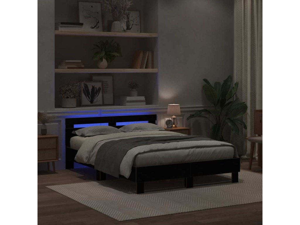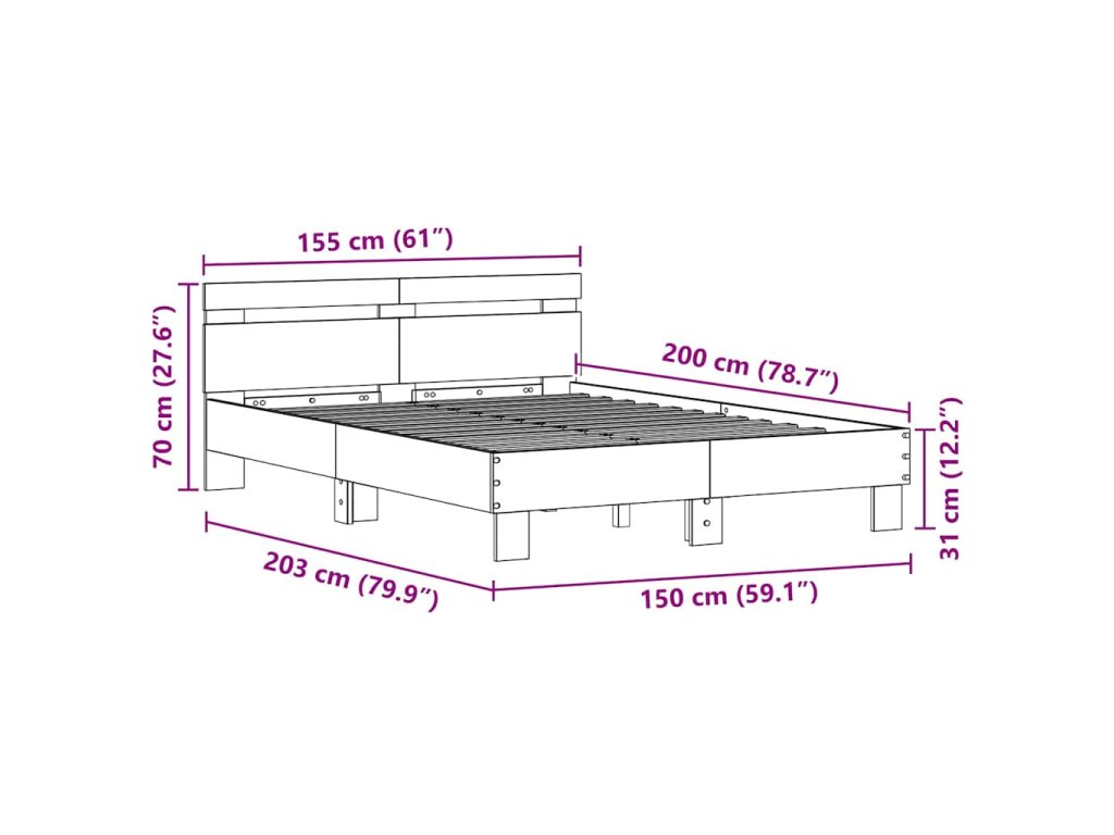 Rám postele s LED Černý dub 150 x 200 cm kompozitní dřevo 3333944