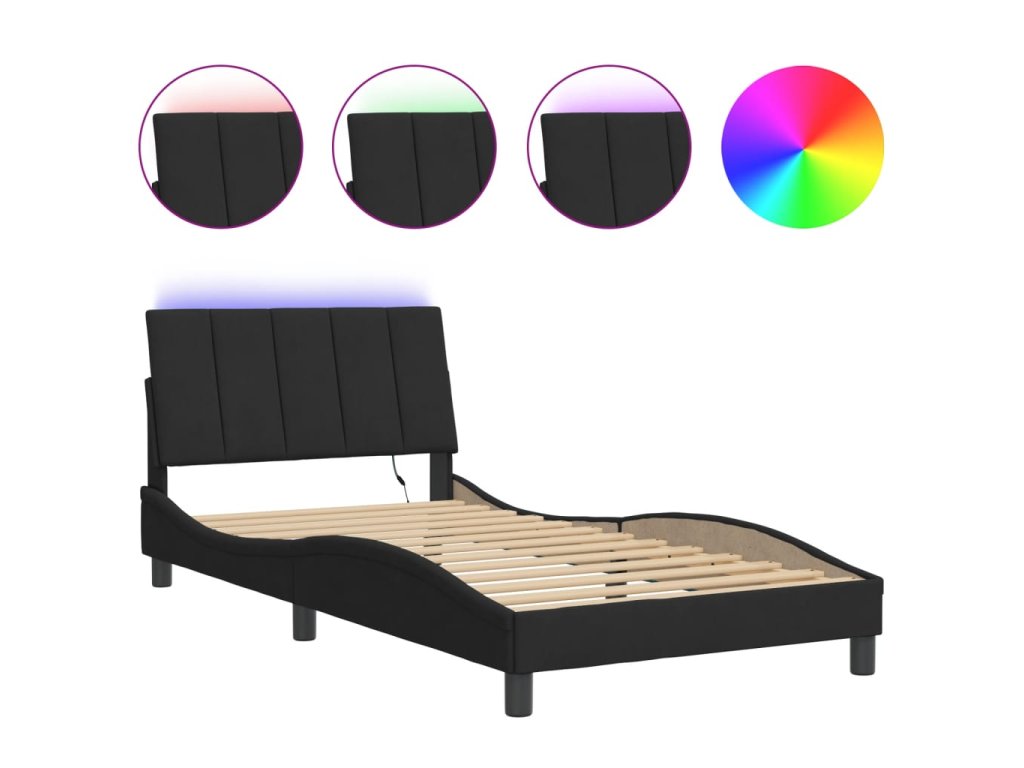 Rám postele s LED osvětlením bez matrace Hanko černý 100 x 200 cm samet 3213765