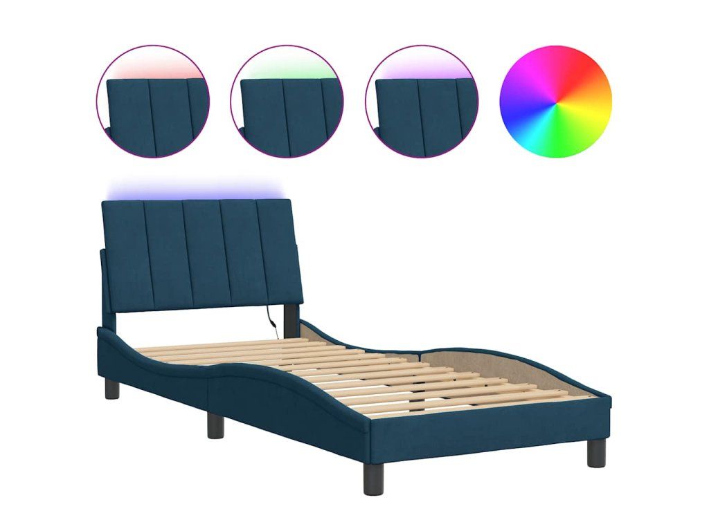 Rám postele s LED osvětlením bez matrace Hanko modrý 90 x 190 cm samet 3213755