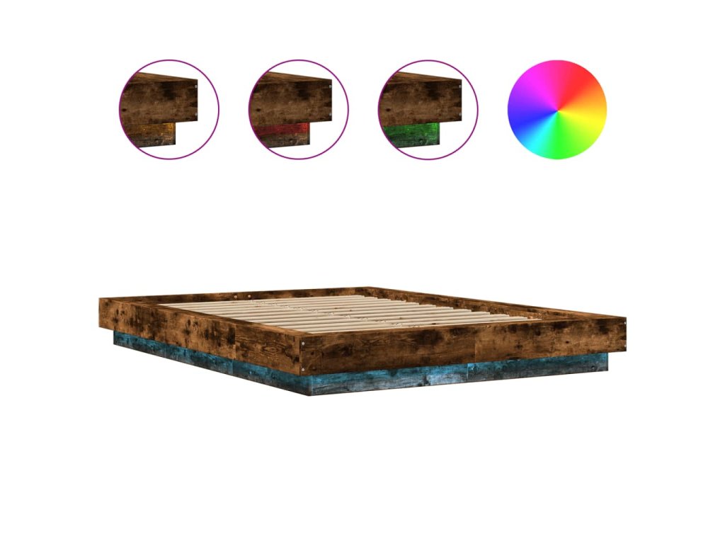 Rám postele s LED osvětlením kouřový dub 120 x 190 cm kompozit 3281144