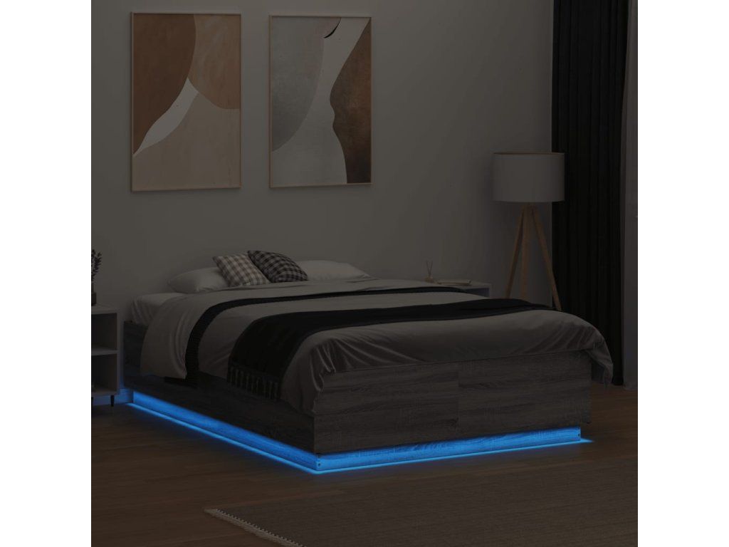 Rám postele s LED osvětlením šedý sonoma 135 x 190 cm kompozit 3209651