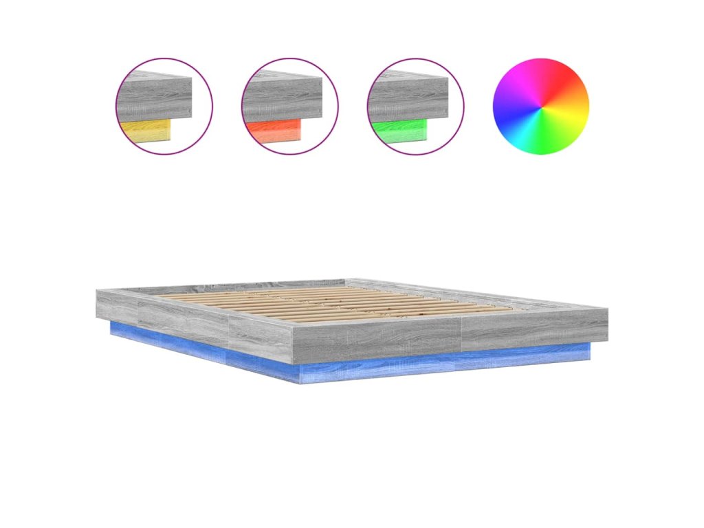Rám postele s LED osvětlením šedý sonoma 140 x 200 cm kompozit 3281103