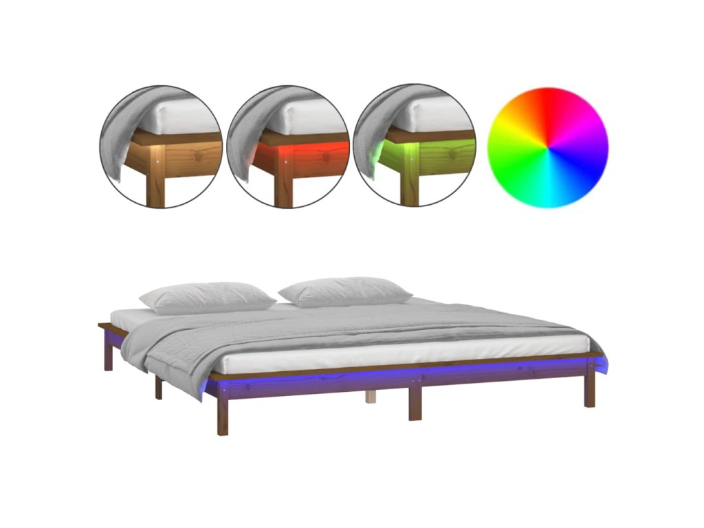 Rám postele s LED světlem medově hnědý 200x200 cm masivní dřevo 820629