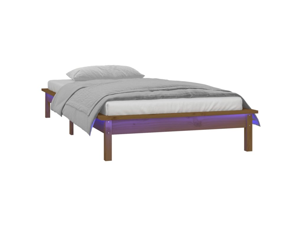 Rám postele s LED světlem medově hnědý 90 x 200 masivní dřevo 820594
