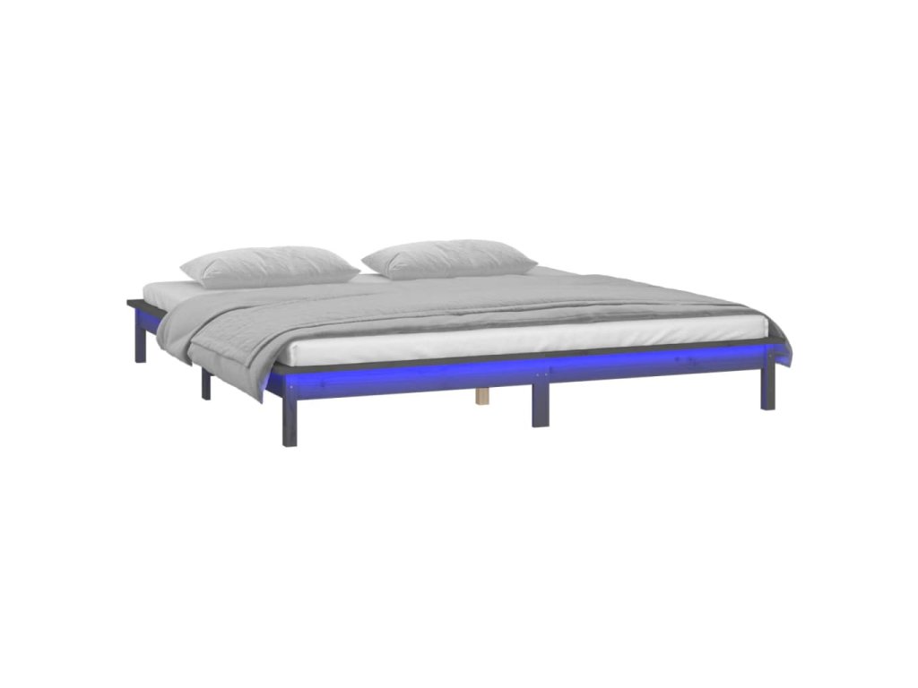 Rám postele s LED světlem šedý 140 x 190 cm masivní dřevo 820653