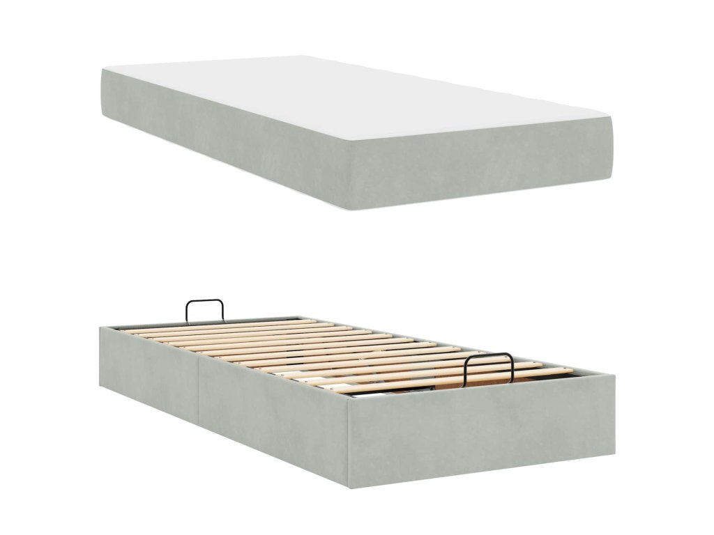 Rám postele s matrací s matrací 2 pcs Světle šedá samet 3399540