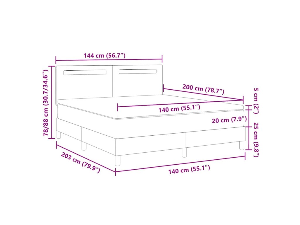 - Velikost matrace: Dvojpostel (140 cm x 200 cm nebo 55" x 79")