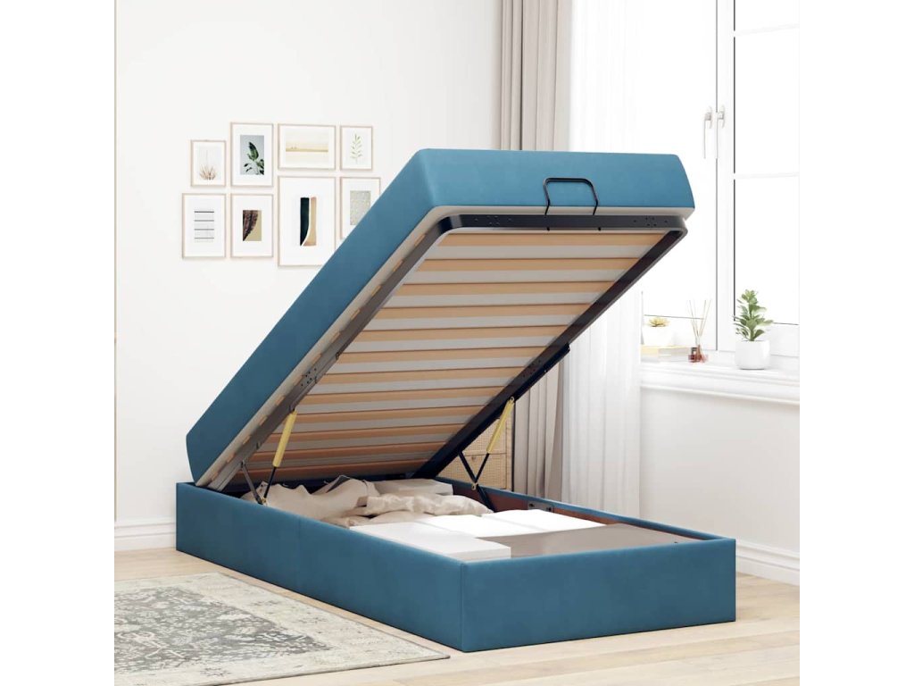 Rám postele s matrací s úložištěm Modrá 100 x 200 cm samet 3399544