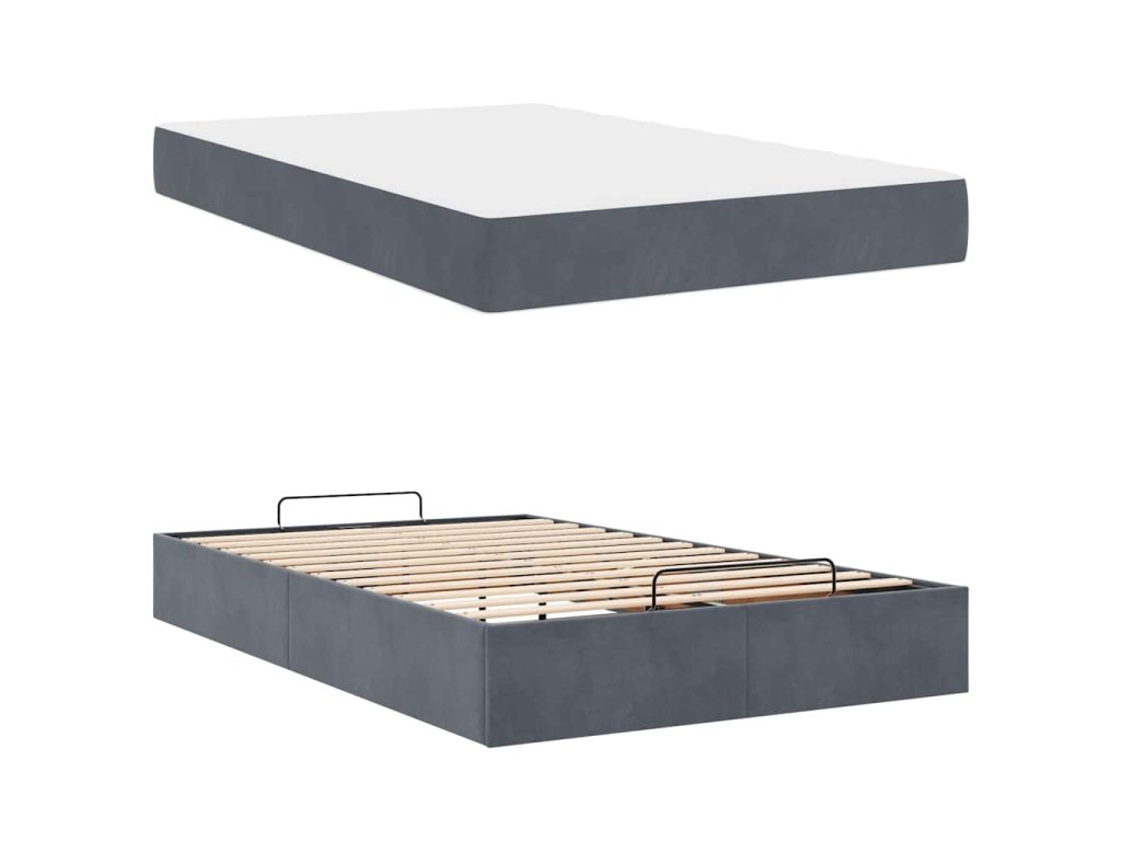 Rám postele s matrací s úložištěm Tmavě šedá 120 x 200 cm samet 3399553