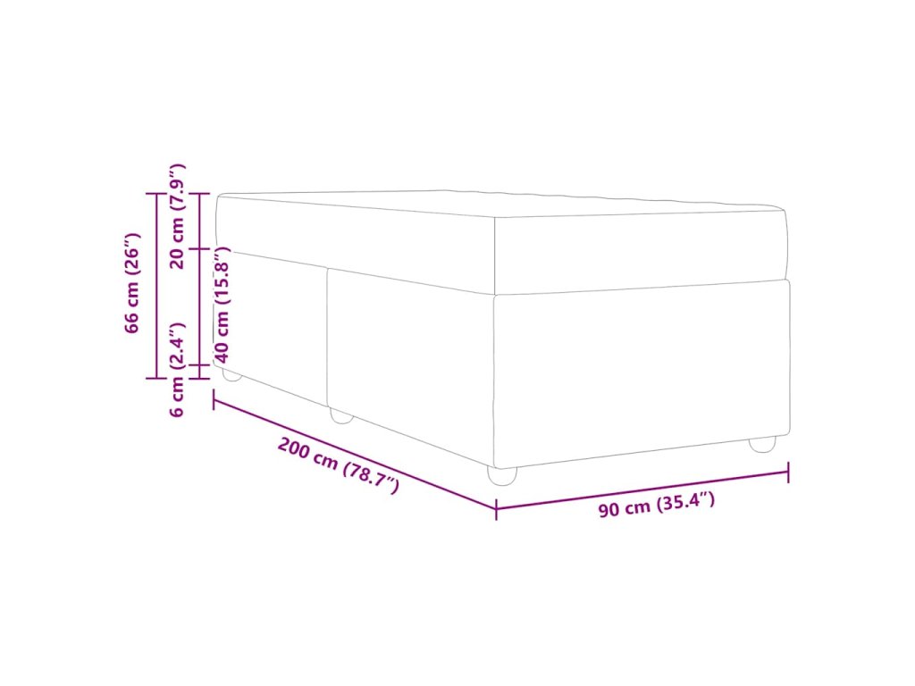 - Velikost matrace: Jednolůžko (90 cm x 200 cm nebo 35" x 79")