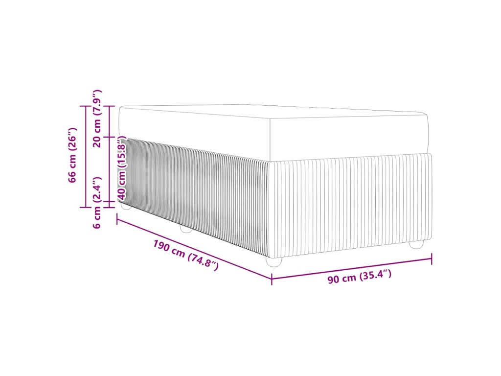 - Velikost matrace: Krátké jednolůžko (90 cm x 190 cm nebo 35" x 75")