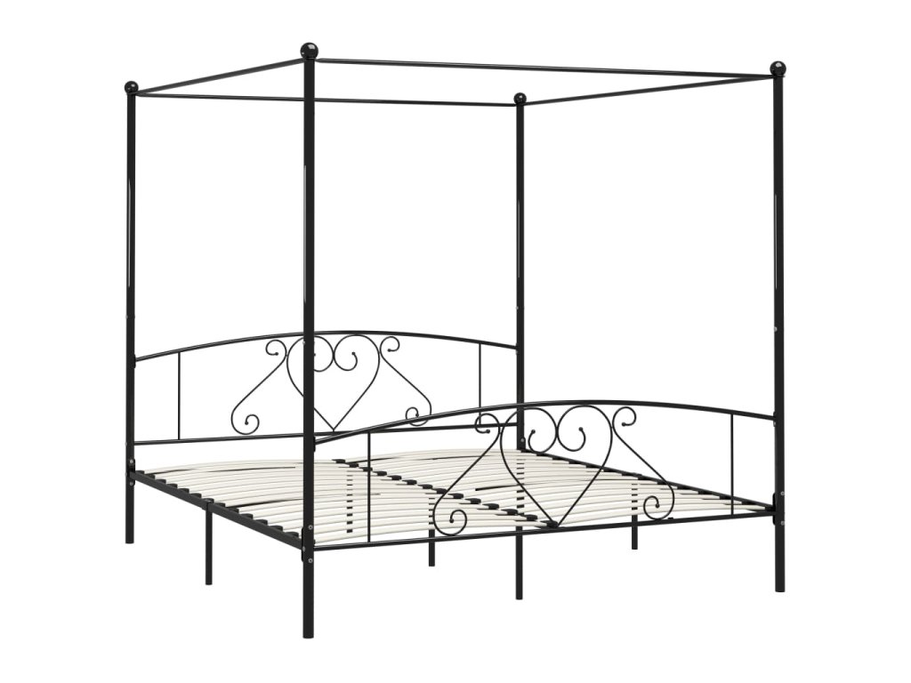 Rám postele s nebesy černý kovový 200 x 200 cm 284439