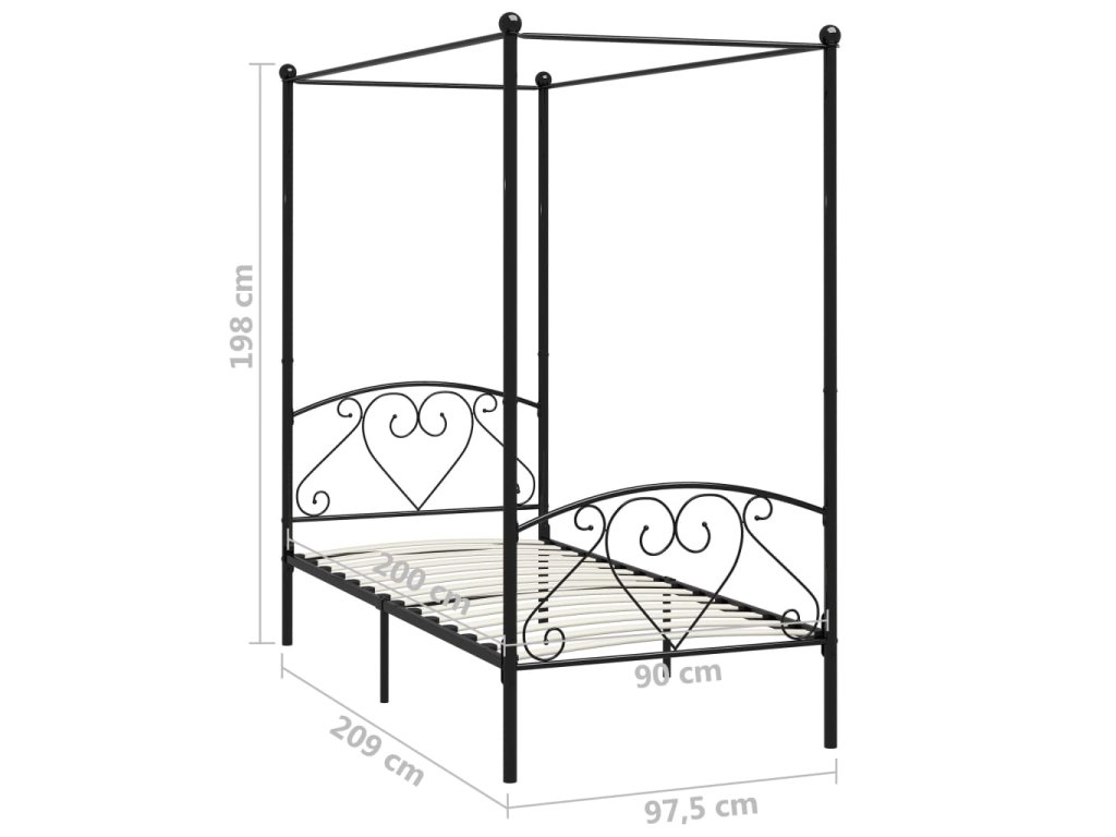 Rám postele s nebesy černý kovový 90 x 200 cm 284433