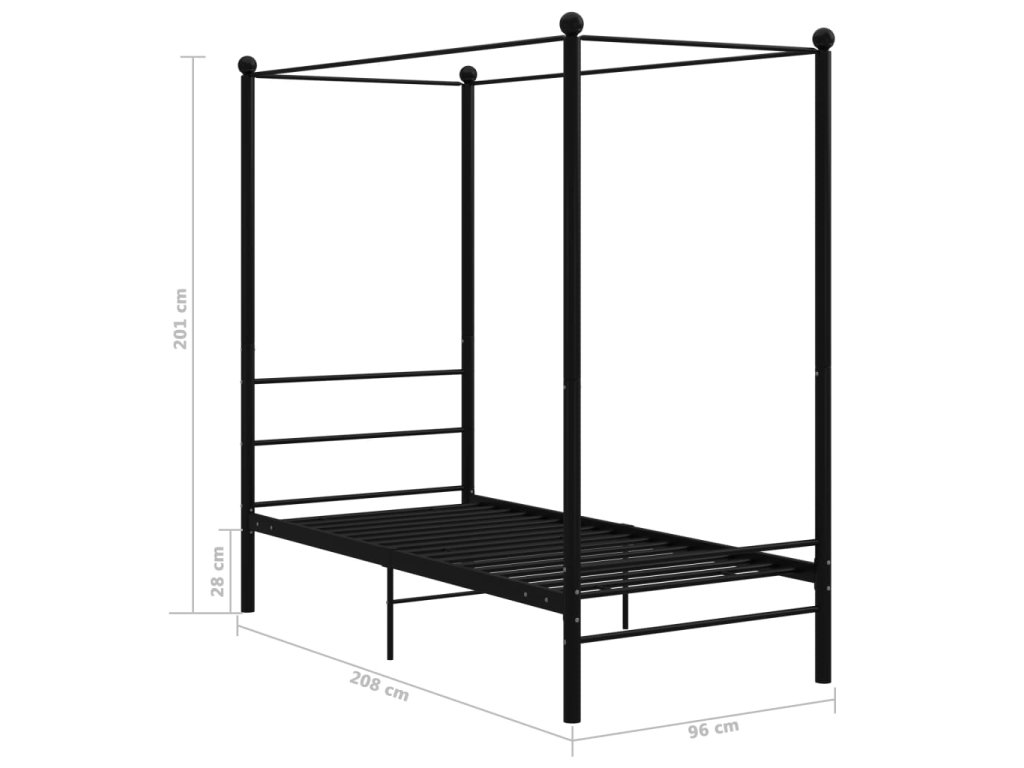 Rám postele s nebesy černý kovový 90 x 200 cm 325051