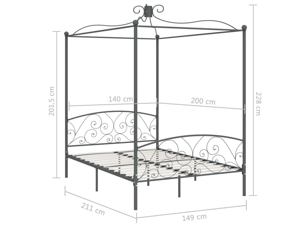 Rám postele s nebesy šedý kovový 140 x 200 cm 284483