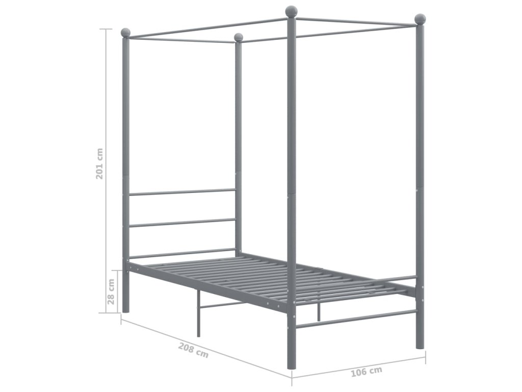 Rám postele s nebesy šedý kovový 90 x 200 cm 325053
