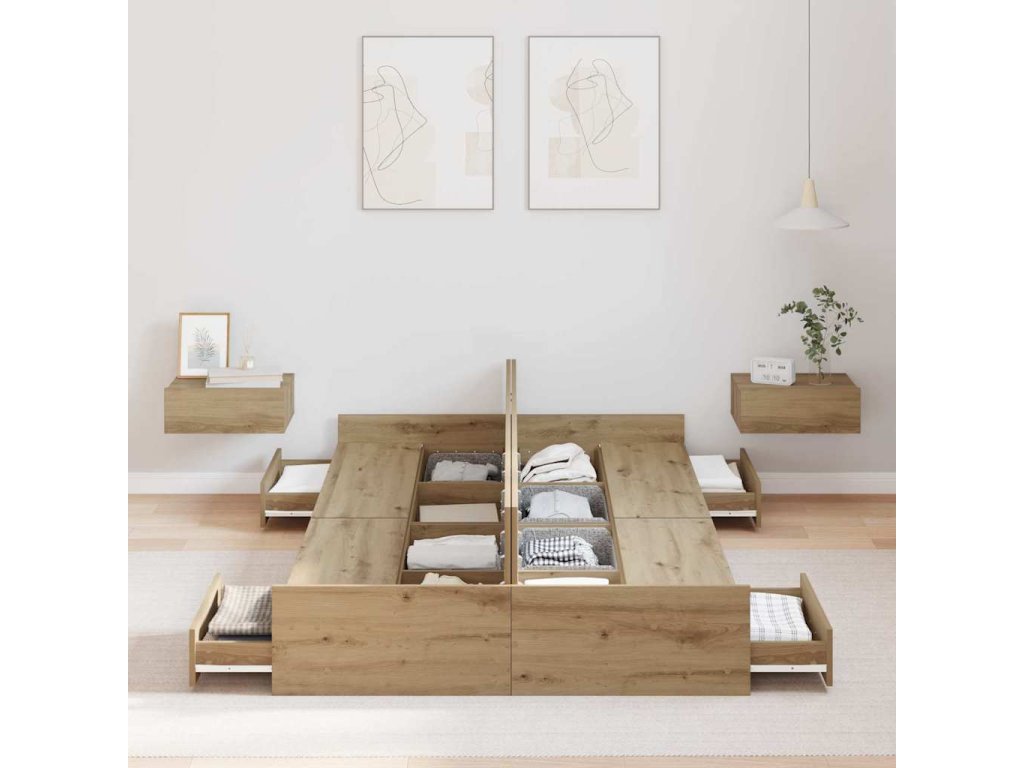- Komplexní úložná řešení: Postel má spoustu integrovaných zásuvek, což maximalizuje místo v ložnici. Tyto úložné boxy z inženýrského dřeva vám umožní pohodlně skladovat věci jako ložní prádlo nebo oblečení a udržet místnost v pořádku.