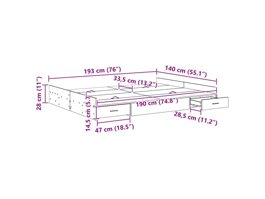 - Komplexní úložná řešení: Postel má spoustu integrovaných zásuvek, což maximalizuje místo v ložnici. Tyto úložné boxy z inženýrského dřeva vám umožní pohodlně skladovat věci jako ložní prádlo nebo oblečení a udržet místnost v pořádku.