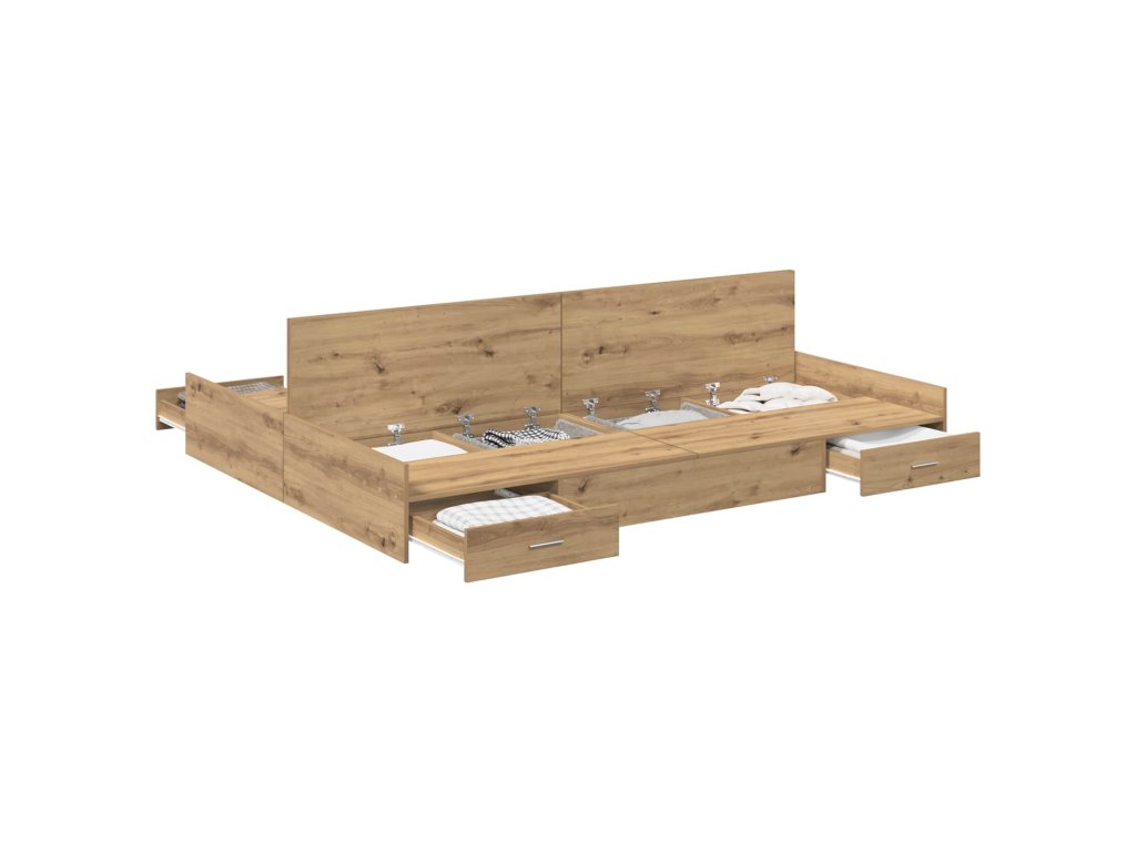 - Komplexní úložná řešení: Postel má spoustu integrovaných zásuvek, což maximalizuje místo v ložnici. Tyto úložné boxy z inženýrského dřeva vám umožní pohodlně skladovat věci jako ložní prádlo nebo oblečení a udržet místnost v pořádku.