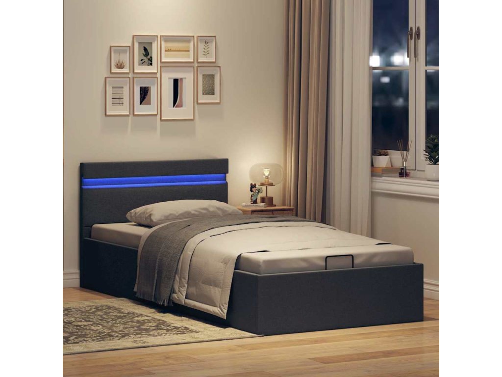 Rám postele s úložným prostorem LED tmavě šedý textil 100x200cm 285601