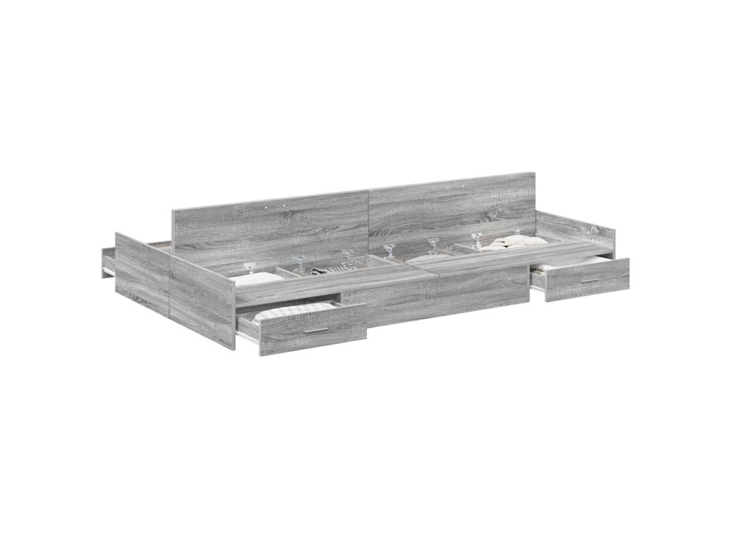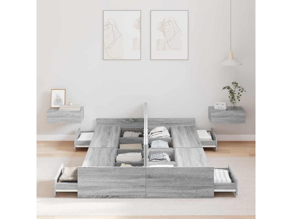 - Komplexní úložná řešení: Postel má spoustu integrovaných zásuvek, což maximalizuje místo v ložnici. Tyto úložné boxy z inženýrského dřeva vám umožní pohodlně skladovat věci jako ložní prádlo nebo oblečení a udržet místnost v pořádku.