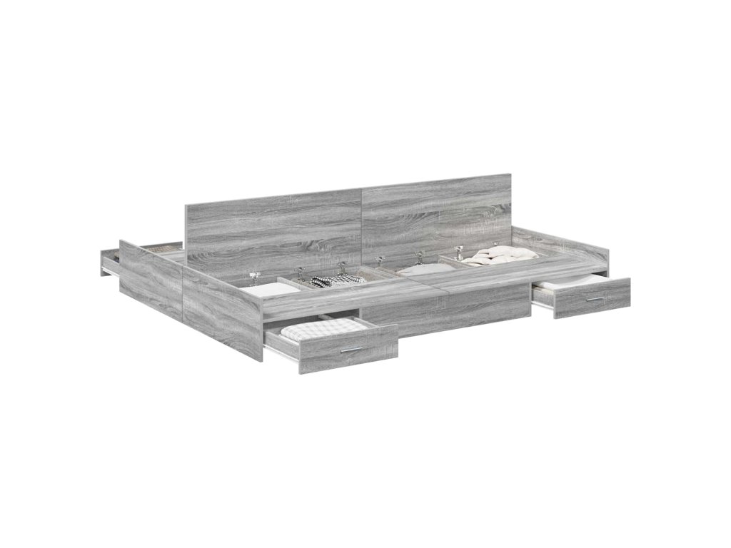 - Komplexní úložná řešení: Postel má spoustu integrovaných zásuvek, což maximalizuje místo v ložnici. Tyto úložné boxy z inženýrského dřeva vám umožní pohodlně skladovat věci jako ložní prádlo nebo oblečení a udržet místnost v pořádku.