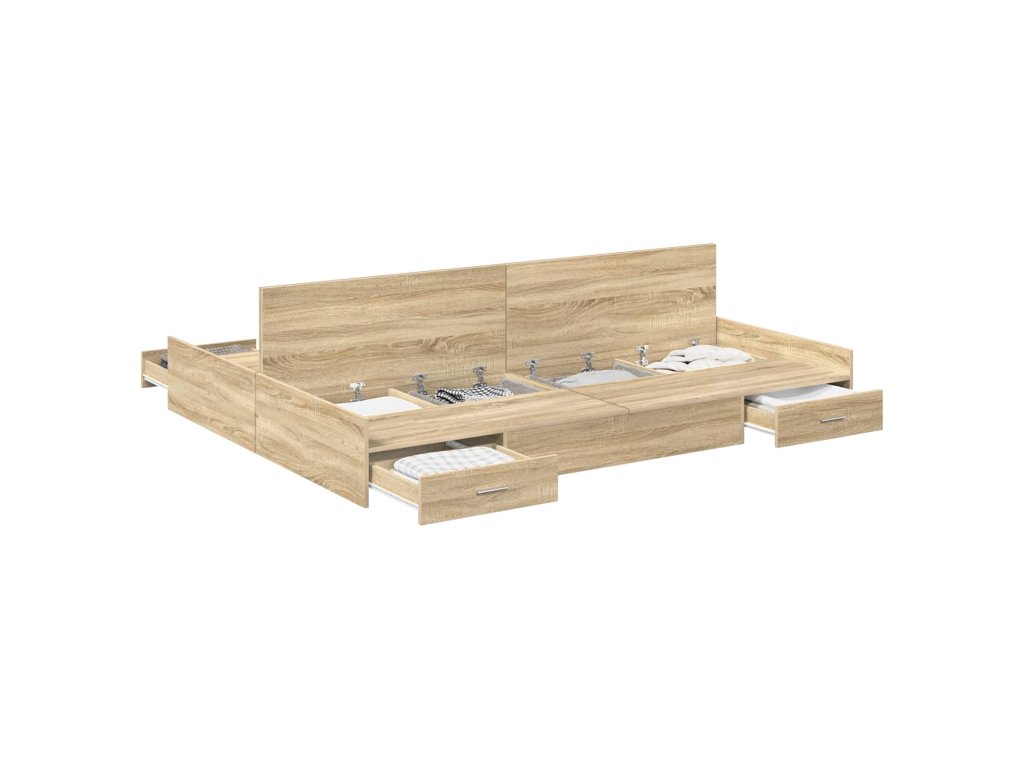- Komplexní úložná řešení: Postel má spoustu integrovaných zásuvek, což maximalizuje místo v ložnici. Tyto úložné boxy z inženýrského dřeva vám umožní pohodlně skladovat věci jako ložní prádlo nebo oblečení a udržet místnost v pořádku.