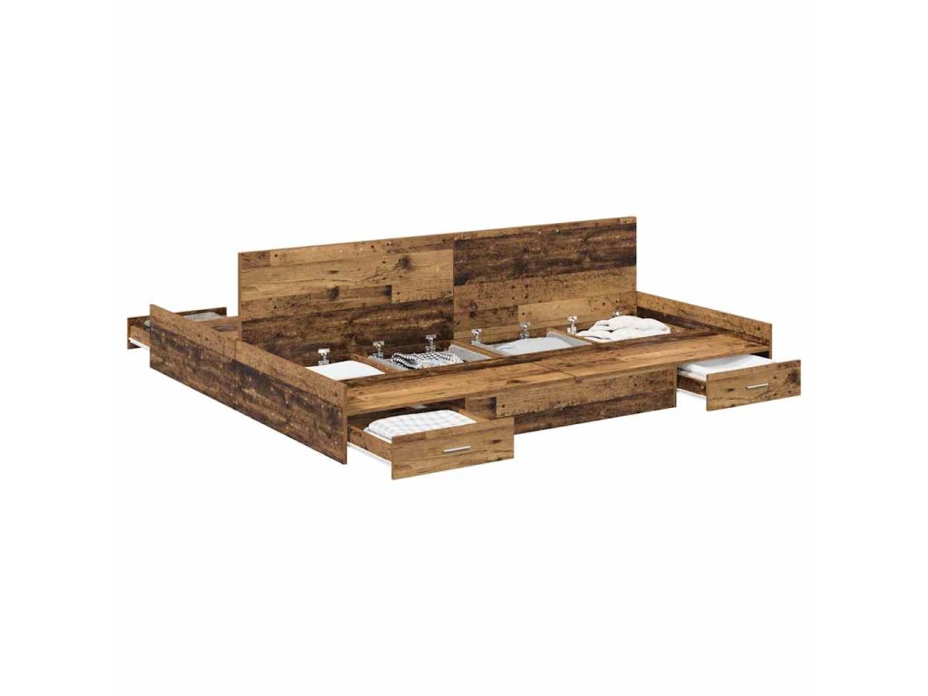 Rám postele s úložným prostorem s čelo Staré dřevo 200 x 200 cm 3335267