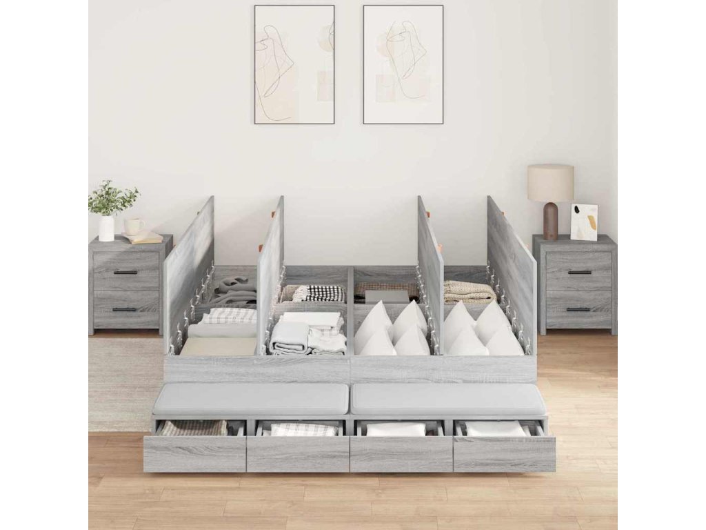 Rám postele s úložným prostorem se zásuvkou Šedá Sonoma 135 cm 3335706