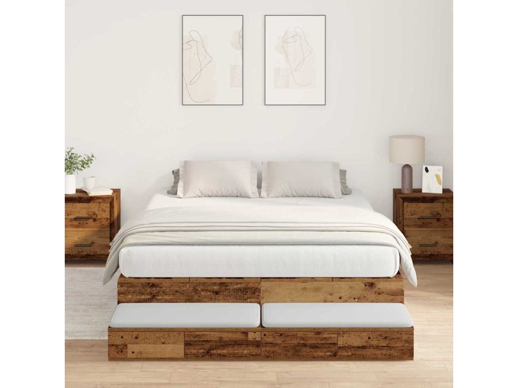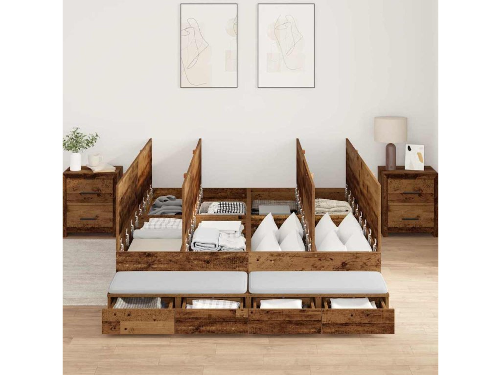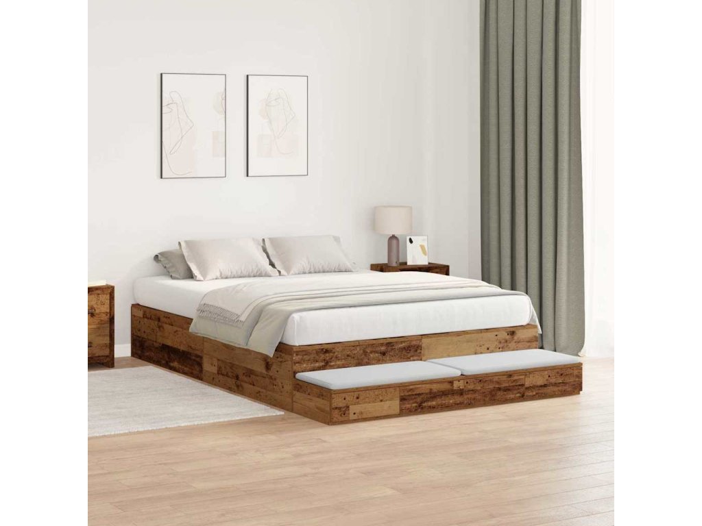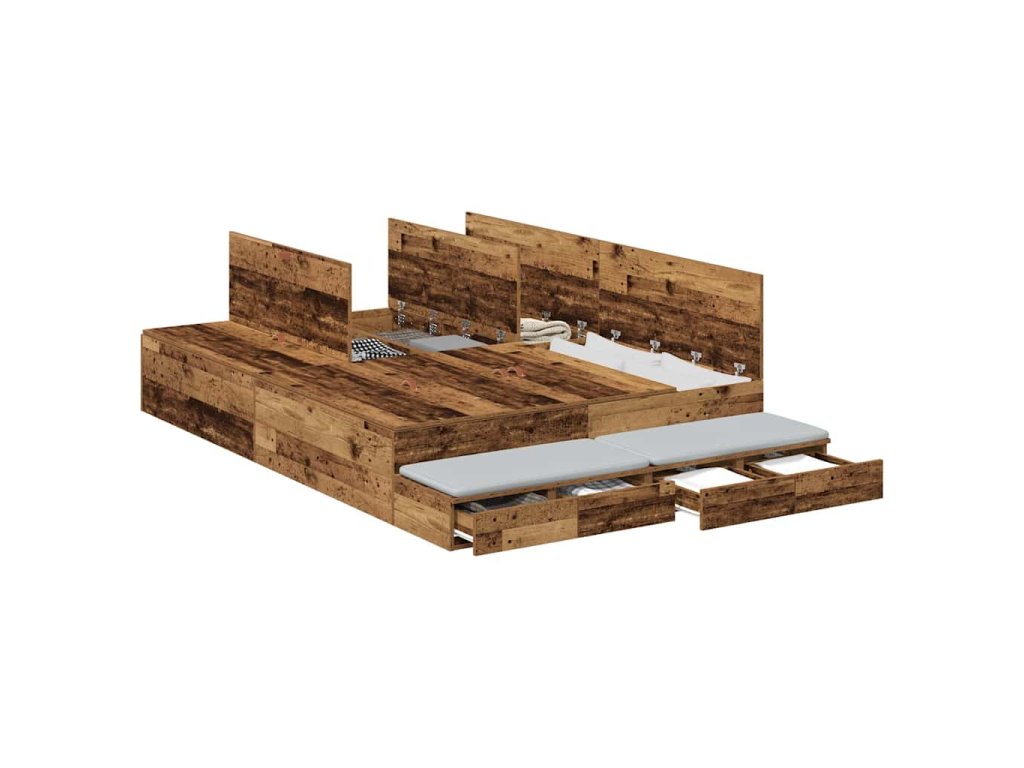 Rám postele s úložným prostorem se zásuvkou Staré dřevo 135 cm 3335707