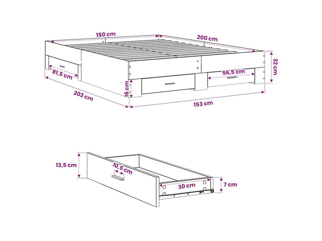- Rozměry zásuvky postele (S): 56,5 x 31,5 x 13,5 cm (D x Š x V)