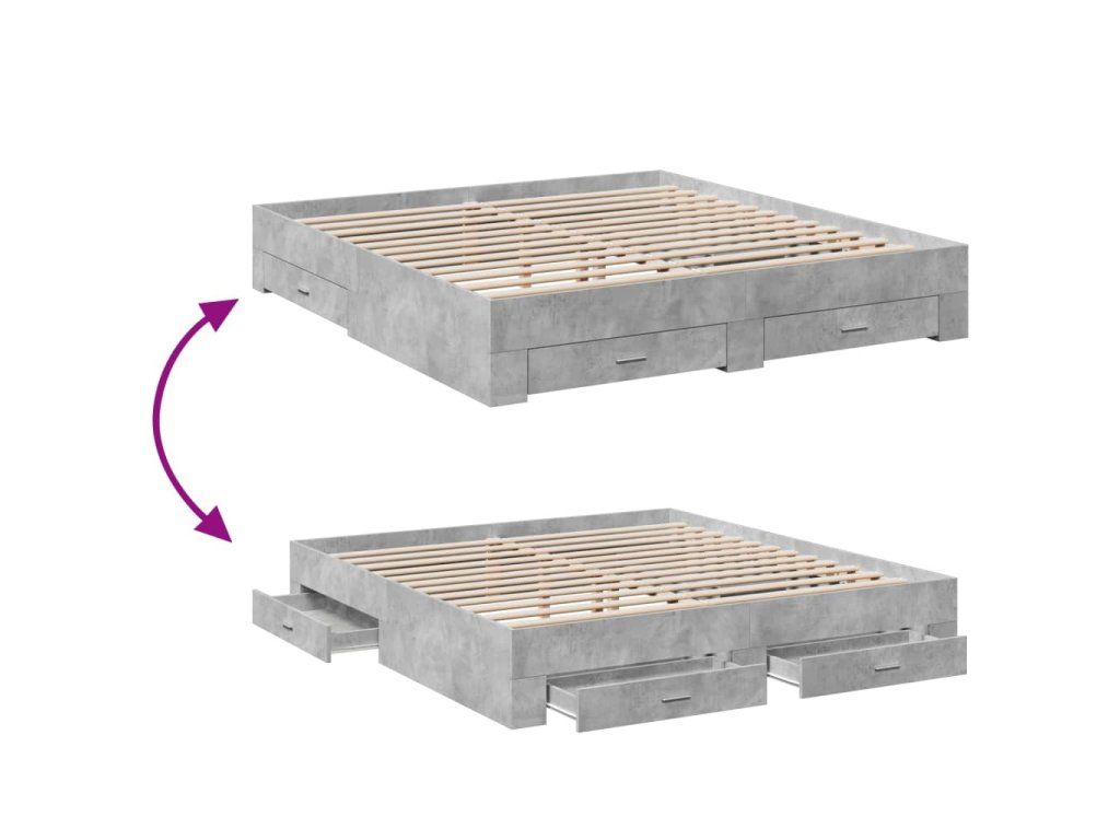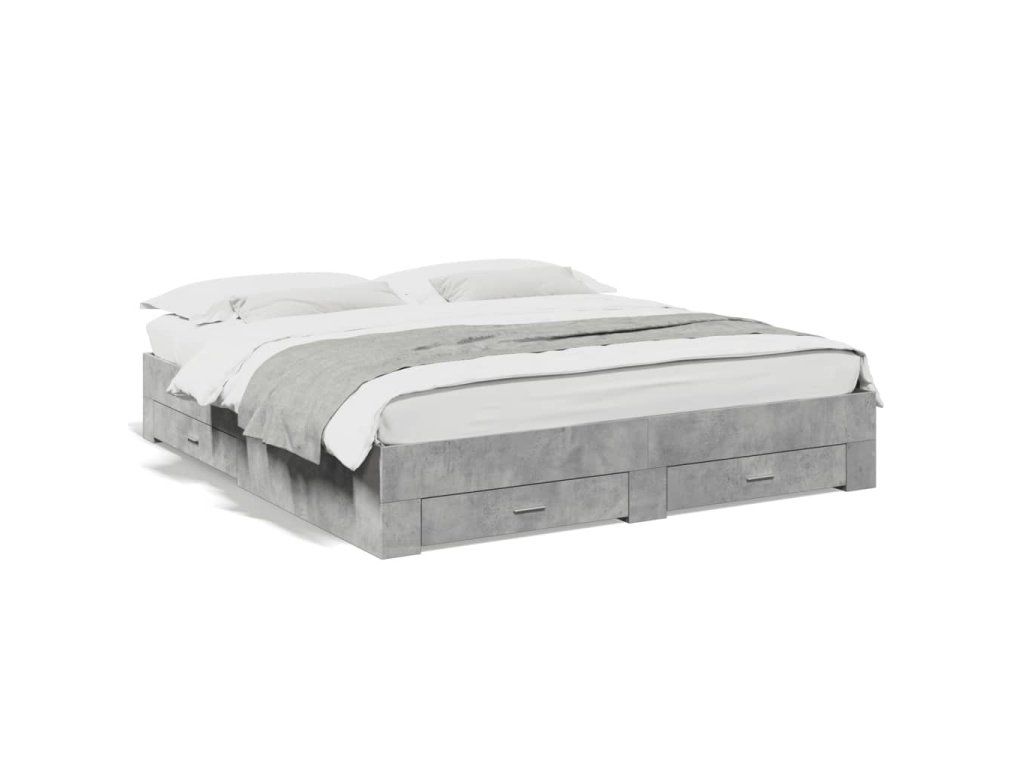 Rám postele se zásuvkami betonově šedý 200 x 200 cm kompozit 3280359