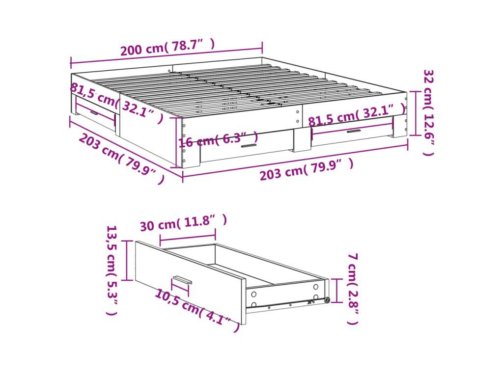- Rozměry zásuvky postele (každá): 81,5 x 31,5 x 13,5 cm (D x Š x V)