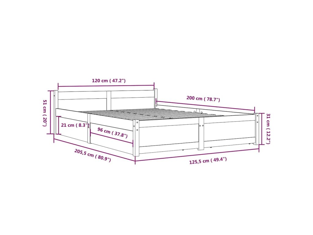 - Rozměry postele: 205,5 x 125,5 x 51 cm (D x Š x V)